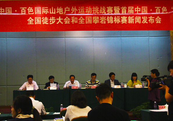 第八屆中國·百色國際山地戶外運動挑戰賽暨首屆中國·百色“地心之旅”全國徒步大會和全國攀巖錦標賽新聞發布會現場