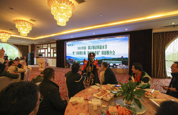 【香港商報網訊】記者郭代勤報道: 4月5日,2015中國·都江堰清明放水節暨“多彩都江堰 快樂四季遊”旅遊產品推介會在都江堰錦弘國宴賓館召開,吸引了來自全球50餘家旅行商代表。會上,都江堰市重點對外推薦了近50條旅遊線路,向全球遊客開啟快樂四季遊。