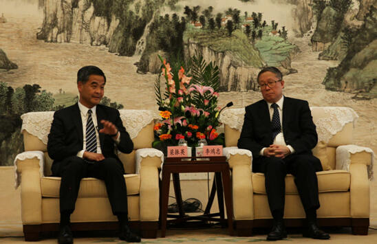 李鴻忠對梁振英一行表示歡迎,感謝特區政府長期以來對湖北經濟社會發展的大力支持。他說,近年來鄂港兩地交流合作和經貿往來日益緊密。目前,香港已成為湖北最大的貿易夥伴和最重要的外資來源地。當前,國家大力實施長江經濟帶、長江中遊城市群發展等重大戰略,湘鄂贛三省攜手打造“中三角”有望成為我國經濟增長“第四極”。香港特區政府在武漢設立經濟貿易辦事處,將更加有力地推動包括湘鄂贛在內的內陸省份與香港交流合作。香港是重要的國際金融、貿易、交通、信息中心,在市場經濟、對外開放、城市管理、公共服務等方面有許多先進理念和好做法、好經驗,值得湖北認真學習借鑒。希望雙方在現有良好合作基礎上,不斷深化經貿、科技、文化、政府間等各領域交流合作,促進雙方互利共贏、共同發展。