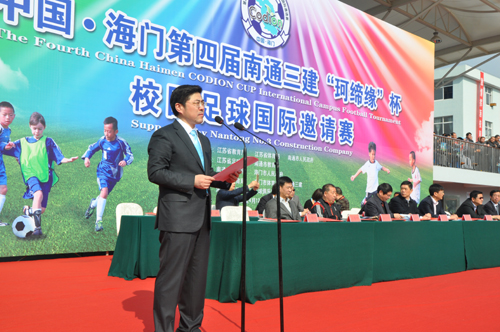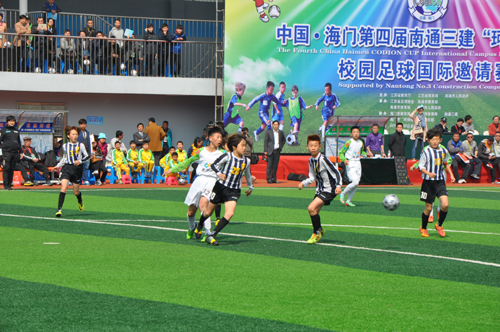 【香港商報訊】記者趙振樺 通訊員俞新美 曾煒報道:4月10日,中國·海門第四屆南通三建“珂締緣”杯校園足球國際邀請賽在海門開幕,為期三天的時間裏,來自韓國、朝鮮、泰國、日本及國內上海、江蘇等地的18支足球隊將角逐U10、U12、U14的冠軍。