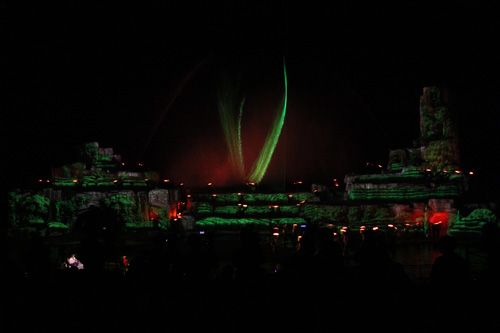 “武夷水秀·夢之泉”立足武夷山深厚歷史文化,以3個主人公,將竹筏停靠在蜿蜒的九曲溪畔時,尋找到一口泉水而進入夢境所展開的故事,運用魔幻而靈動的國際最新多媒體創新技術手段,水、火、霧、舞與聲、光、電、氣、4D動畫相結合,藝術、創意、科技多形式相融合,氣勢磅礴地演繹武夷水文化,歌頌九曲溪水的九個美德(純潔、美麗、智慧、力量、生命、財富、永恒、和諧、想象力),展示武夷山朱子儒家文化、彭祖養生文化、大紅袍茶文化等特色文化內涵,融入閩越王城、五夫龍魚、武夷宮等本土元素。其中一段表現武夷茶海外運輸的歷史,選擇了二胡、古箏等民族樂器,表現出“萬里茶道”歷史場景的恢弘與艱辛。水是地球生物賴以生存的物質基礎,是維系地球生態環境可持續發展的首要條件,“武夷水秀?夢之泉”通過對武夷山九曲溪水美德的贊頌,向世人宣傳保護水資源的重要性,以期達到保護水資源、保護生態環境的目的。