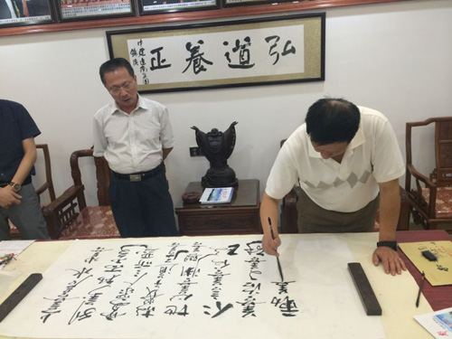 汪忠玉常說“寫字作畫,‘不僅可提高人的素養,更可以鍛煉身體’,提高素養,能理解,可鍛煉身體,有點讓人意外,據汪忠玉介紹,他經常作畫一站就是五六個小時,提筆沷墨之間,就像是練氣功、打太極,也難怪,汪忠玉六十有餘,還能身體硬朗,精神健爍。