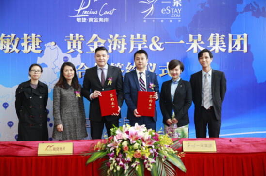 [香港商報網網訊]記者李苑立報道:近日,廣州知名地產商敏捷集團在陽江海陵島敏捷·黃金海岸銷售中心,與一呆集團、廣州市諾盟酒店企業管理有限公司、廣州市維思瑞酒店管理有限公司,舉行了敏捷·黃金海岸度假公寓酒店管理合作簽約儀式。此舉意味著敏捷·黃金海岸度假公寓將與3家酒店管理公司強強聯手共同管理,為業主們提供品牌管理增值服務,能帶來更好的投資收益。