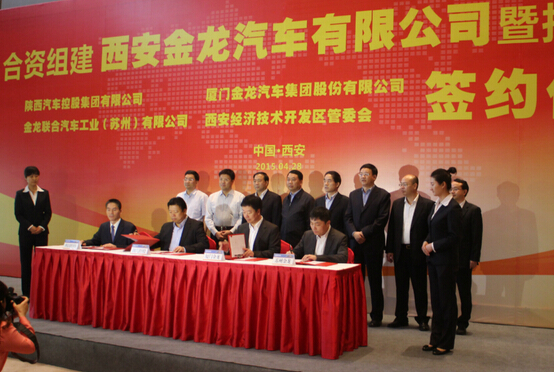 【香港商報網訊】記者李藍溪報道:4月28日,在陜西省副省長姜鋒、西安市副市長黃海清、西安經濟技術開發區黨工委書記賈生林等的共同見證下,陜汽控股集團與金龍汽車集團代表簽署合作協議,確定合資組建客車公司,共同建設西北地區最大的新能源客車生產基地。據悉,該項目建成達產后,將有效拉動陜西省客車零部件配套產業的聚集發展,并將以陜西省和西安市客車市場為依托,輻射西北、華北、中亞、東歐客車市場,有力促進國家"一帶一路"發展戰略的實施。