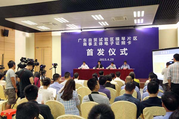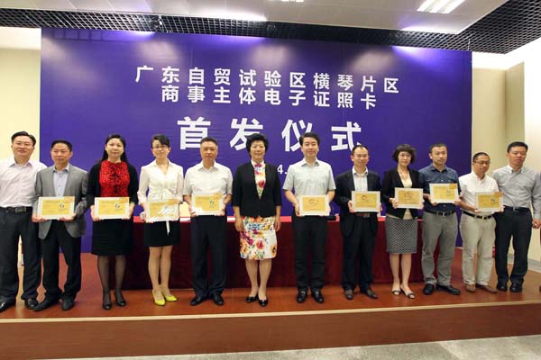 商事主体多功能电子证照卡在横琴新区片区首发仪式现场。