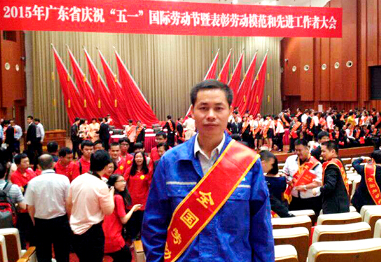 在表彰大會上,中共中央政治局常委、中央書記處書記劉雲山親手為其頒發“全國勞動模范”榮譽證書,並和他親切握手。