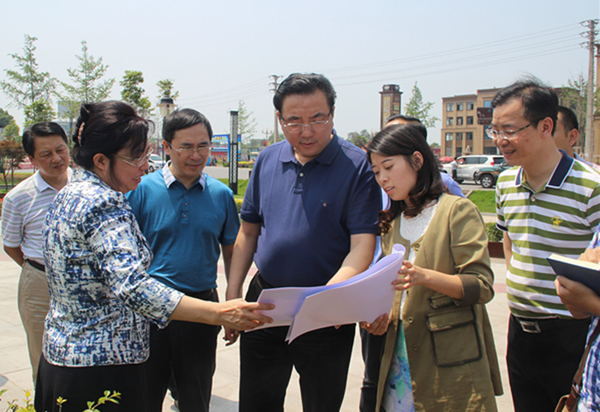宜宾市人民政府市长徐进(中)听取长宁县城入口广场城市雕塑工程介绍