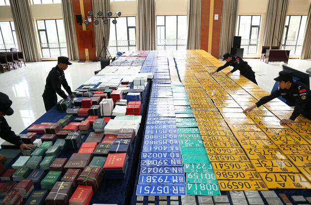 2013年起,楊某夫婦在貴陽市繁華路段大肆張貼廣告,并按照他人要求“按需定制”假車牌證件。貴陽市內在固定地點進行交易,市外則采取快遞方式發出。5月7日,貴州警方展開收網行動,專案組在溫州和貴陽、遵義、畢節等地聯合行動,一舉打掉了這一特大制販假車牌證件的犯罪團伙。