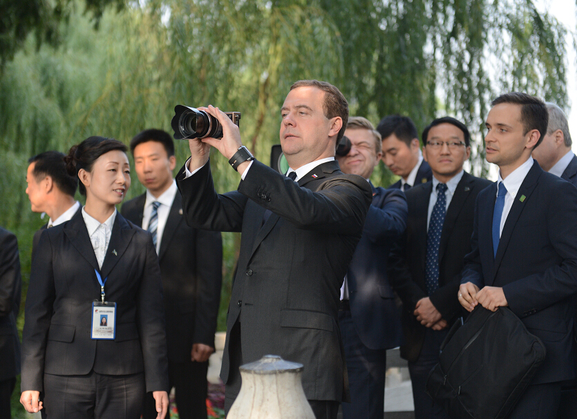 俄羅斯總理梅德韋杰夫在包公園攝影(中)