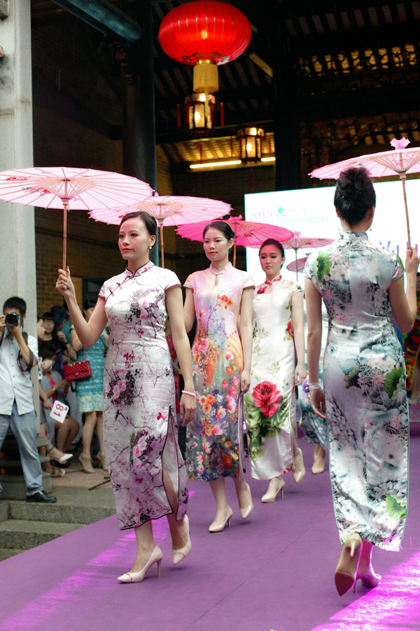 美女们身着旗袍现场走秀。
