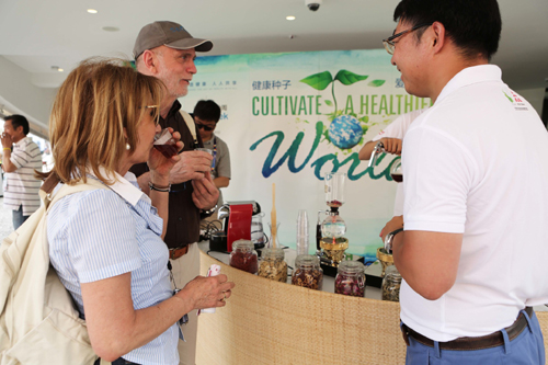 各項活動中,位於中國企業聯合館一樓的傳統茶藝表演和三樓的帝泊洱普洱茶珍互動體驗區最為引人注目。傳統茶藝表演者身著古典旗袍,盡顯中國女性優雅,在緩緩細膩的動作中將水的柔性注入到帝泊洱茶,美感中飄來茶的清香,入口感受到茶的潤澤。這裏有亞洲特有的產品,還有品類繁多的花茶。遊客們可以自主選擇搭配,在工作人員的協助下體驗從東方飄來的養生良方。