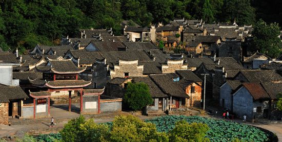 村落背靠象嶺,圍繞三大宗祠建筑的核心地位,聚族而居,前后續建360多棟明、清古民居。
