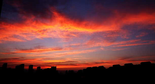 6月7日晚8点,太原出现“火烧云”奇观。当时,天空红霞飞舞,霞光万丈,壮美无比。民间有谚语,“早烧不出门,晚烧行千里”。据了解,火烧云是日出或日落时出现的赤色云霞,属于低云类,是大气变化的现象之一。火烧云常出现在夏季,特别是在雷雨之后的日落前后,在天空的西部。由于地面蒸发旺盛,大气中上升气流的作用较大,使火烧云的形状千变万化。火烧云的出现,预示着天气暖热、雨量丰沛、生物蓬勃生长的时期即将到来。(毕强 摄)