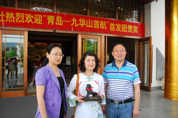 經審核,乘坐青島至九華山航線6月9日首航的山東青島的矯玉清女士獲得了2015年度九華山首位風景區“文明游客”殊榮。矯玉清女士表示,九華山環境優雅,佛教氛圍濃厚,九華山舉辦這樣的活動特別有意義,不僅倡導了文明旅游,規范了不文明旅游行為,也提升了景區形象。他們要向家人及朋友廣泛介紹九華山、宣傳九華山,做一個文明旅游倡導者。