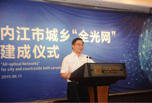 儀式上,據內江市人民政府市長楊松柏介紹,近年來,內江深入落實國家“寬帶中國”戰略,加快寬帶網絡基礎設施建設,全力打造“智慧內江·光網城市”,累計投入10億元,建設光網端口50萬個,實現城區及鄉鎮光網絡全覆蓋、1263個行政村通光纖網絡,通達能力和覆蓋水平邁上了新的台階。城鄉“全光網”的建成,為內江市全域縱深推進電子商務發展、建設智慧城市、擴大信息惠民試點奠定了堅實的基礎,為內江市推進工業化、信息化、城鎮化、農業現代化“四化”同步融合發展帶來新的契機。