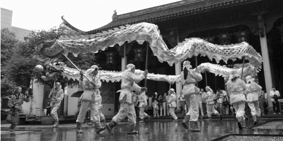 《永康布龍》,22名青壯年組成的舞龍隊,在悠揚的嗩吶聲和激烈的鑼鼓聲中,舞動一條46米的布龍,激烈地舞動游走,讓人眼花繚亂。