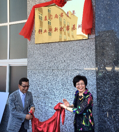 廈門市副市長倪超(右一)與全國台企聯常務副會長曾欽照為基地揭牌(陳庚攝影)