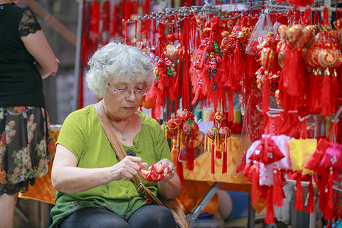 在南溪區南山村,68歲的李群章阿姨做香包已經10年了,每年都會購買1000多元的上好棉花、布料、香料等制作十二生肖、繡球、蝴蝶、水果、粽子等形狀的香包,在部分香包布面上,李阿姨還會繡上“中國夢”、“南溪美”等字樣,備受大家喜愛。“端午節佩戴香囊是中國人傳統,小小的香囊既增添了節日氣氛,又能驅除蚊蟲,很受歡迎。”李阿姨說。