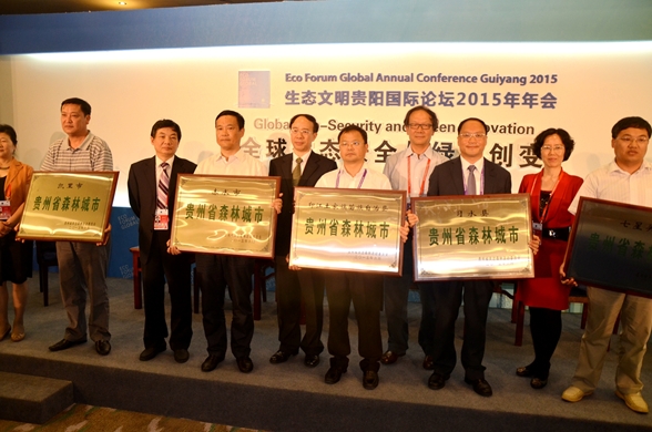 論壇現場還舉行了首批貴州省森林城市授牌儀式。