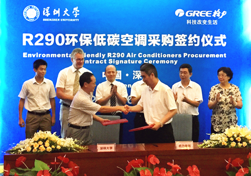 [香港商報訊]記者陸紹龍報道:6月28日,格力電器R290環保冷媒空調上市啟動儀式在深圳舉行。在中國環境保護部環境保護對外合作中心、聯合國工業發展組織、中國家用電器協會相關代表與眾多媒體的見證下,格力電器與深圳大學就R290環保冷媒空調的采購舉行了簽約儀式,國內首單共243台R290環保冷媒空調落戶深圳大學。