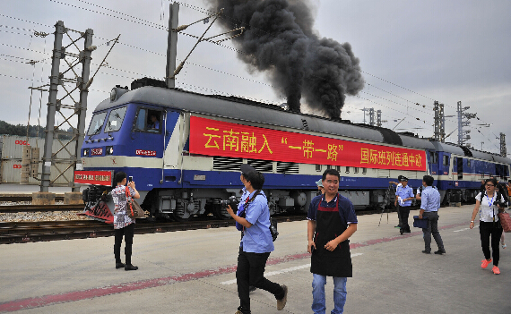 昆明铁路局局长刘柏盛在开行丁式上介绍说,这趟班列由昆明铁路局与中铁集装箱公司共同开行,国内段经过成都、宝鸡、兰州、阿拉山口,国际段经过哈萨克斯坦、俄罗斯、白俄罗斯、波兰、德国後到达荷兰鹿特丹。
