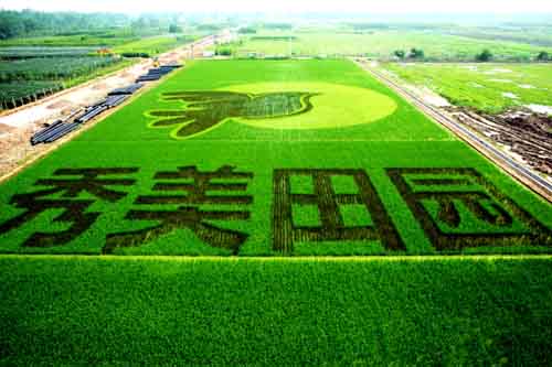 為弘揚廬江稻米文化,推動一三產的深度融合,台創園大膽探索,發展創意農業,通過精心謀劃,高水平設計,委托中國水稻研究所育種,在稻米博物館對面,種植了20畝彩色水稻,利用紫色、黃色、綠色等三種色彩水稻,種出了“和平鴿”圖案和“秀美田園”字樣,藝術稻觀賞展示期達3個多月,種出的圖案色彩鮮明、層次分明、創意獨特,該圖案預示海峽兩岸早日實現和平統一,又極富有藝術性和觀賞性,彌補了廬江仍至安徽“藝術稻”的空白。