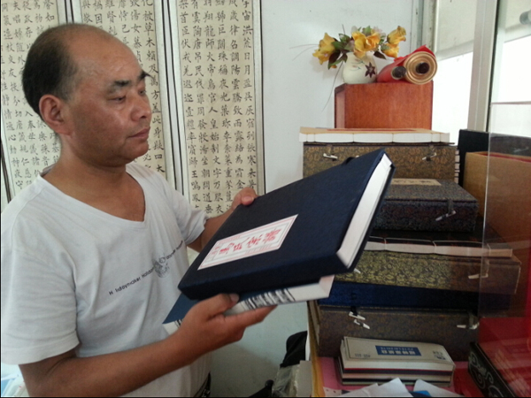 張德文也因為這部《裴氏家譜》聲名鵲起。這之後,由他印制的《徐氏家譜》也於2014年春節被故宮博物院圖書館收藏,“我想他們收藏我印制的這些家譜的用意,可能就是覺得我們制作的這個手藝是傳統工藝,現在會做且還在做的人,在全國可能也找不到幾個人了。”