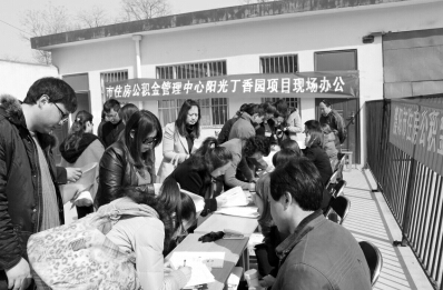 濮陽市住房公積金管理中心工作人員在該市陽光丁香園項目現場辦公