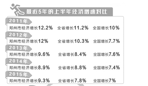 昨天,鄭州市統計局公布的數據顯示,上半年,鄭州市生產總值完成3361.4億元,同比增長9.3%。這個數據,高出全國經濟增速2.3個百分點,比全省經濟增速高出1.5個百分點。比對數據發現,鄭州已經連續5年超過全國和全省的經濟增速。