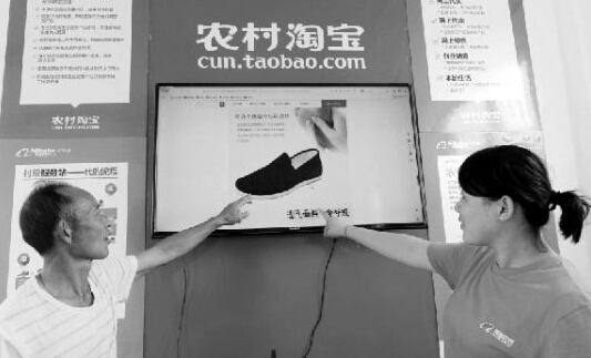農村淘寶服務站內,村民在工作人員指導下網購布鞋。