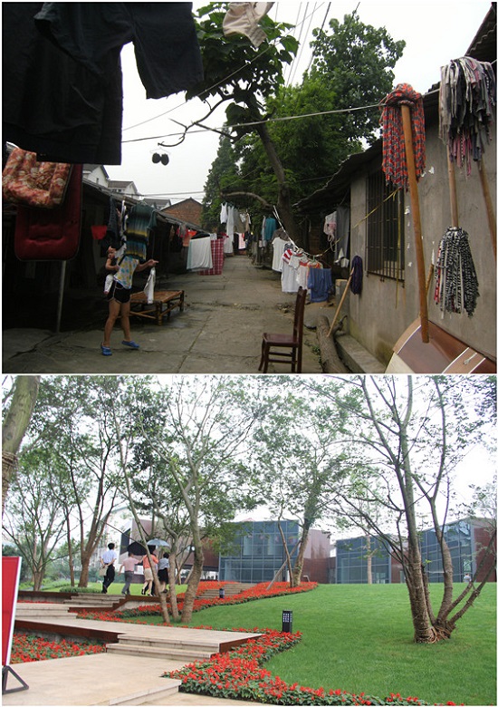 落路口社區:在倒閉了的燈泡廠舊址(上圖)上建立起來的完美新社區(下圖)