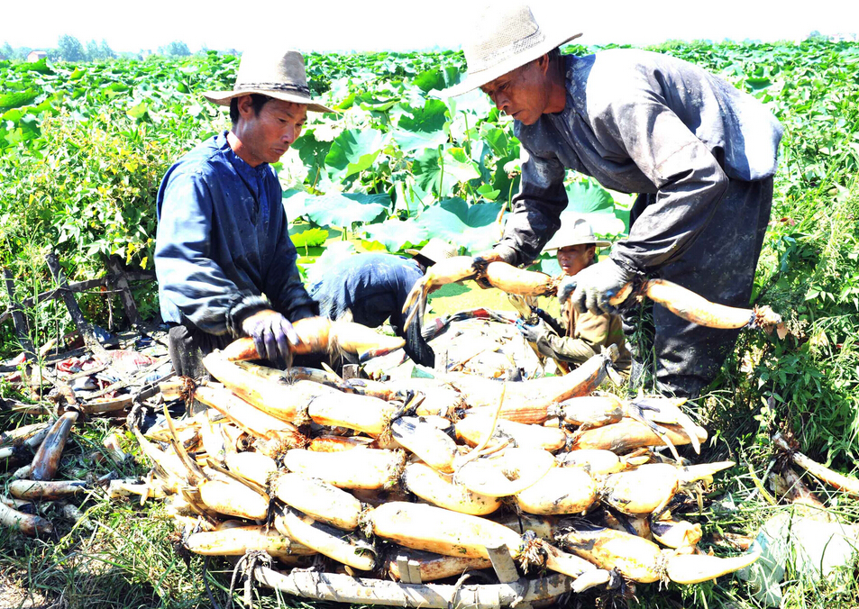 【香港商報網訊】通訊員周躍東攝影報道:8月4日,安徽省廬江縣龍橋鎮夾板村6000畝花香藕在安徽農業大學技術指導下喜獲豐收,畝均產量2000多斤。當日,夾板花香藕進入2個月的銷售旺季,毎天銷往上海、山東、江蘇、安徽等地市場2萬多斤,獲純利800多萬元。