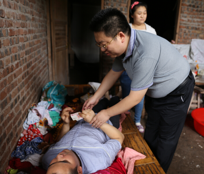 【香港商報網訊】記者金山、通訊員閔勇智報道:8月6日上午11點,火辣辣的太陽烘烤著大地,鄉間的田野在江南風韻的翠竹綠樹掩映下,到處都是一派生機勃勃的宜人景象。然而,底蓬鎮月臺村的殘疾特困村民曾品榮卻正在焦急萬分、愁容滿面地望著床上的兒子;就在這一籌莫展的時刻,立昌醫院院長朱德才頭頂烈日,揮汗如雨地走進了曾家;曾品榮妻子周國香見朱院長來了,急忙招呼讓坐。朱德才直接走進里屋,對睡在床上的曾左波說:“今天,我專程來看你。”說完從懷中掏出400元,遞給曾左波,關切地問道:“你好了嗎?”