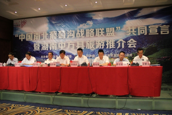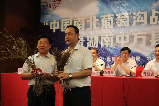 湘吐兩地以葡萄為媒,面向絲綢之路經濟帶沿線國家、地區和"一帶一路"戰略交匯的內地省市,大力發展互補性葡萄產業,聯合打造外向型旅游文化產業,合作開發暢游"南北葡萄溝"的系列旅游產品,用"葡萄文化橋、援疆友誼橋、湘吐民心橋"連結不同旅游市場,共享信息資源,共建營銷同盟;用"南北葡萄溝"鋪就一條經貿發展路、文化援疆路和民生相連、民心相通的新絲路,使西域風情與中原文化交流交融、北國風光與南國盛景交相輝映,全面打造中國最美葡萄品牌和首個跨域葡萄產業聯盟。