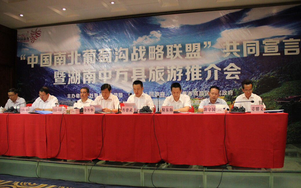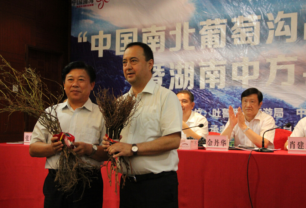 湘吐兩地以葡萄為媒,面向絲綢之路經濟帶沿線國家、地區和“一帶一路”戰略交匯的內地省市,大力發展互補性葡萄產業,聯合打造外向型旅游文化產業,合作開發暢游“南北葡萄溝”的系列旅游產品,用“葡萄文化橋、援疆友誼橋、湘吐民心橋”連結不同旅游市場,共享信息資源,共建營銷同盟;用“南北葡萄溝”鋪就一條經貿發展路、文化援疆路和民生相連、民心相通的新絲路,使西域風情與中原文化交流交融、北國風光與南國盛景交相輝映,全面打造中國最美葡萄品牌和首個跨域葡萄產業聯盟。