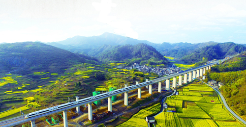 高速列车驶过黄山市歙县晔岔特大桥。 (资料图片)