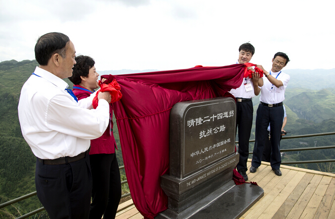 揭碑儀式上,黔西南州委書記張政說,今天,我們在承載抗戰厚重歷史記憶的“二十四道拐”隆重集會,紀念中國人民抗日戰爭勝利70周年,并舉行二十四道拐抗戰公路標識碑揭碑儀式,以此寄托我們對抗日英雄的緬懷之情,表達我們捍衛國家主權和民族尊嚴的堅定信念,傳承我們銘記歷史、珍愛和平、開創未來的正向心愿。欲知大道,必先為史,我們要堅持正確的歷史觀,繼承和發揚偉大的抗戰精神,讓歷史警示未來、讓歷史告訴未來、讓歷史開拓未來,激發全州各族人民熱愛黨、熱愛祖國、熱愛黔西南的熱情,把對抗日英雄的景仰崇敬之情,化作推動各項事業的強大精神動力,凝聚改革發展正能量,提振干事創業精氣神,立足本職,真抓實干,加快發展,為建設美麗黔西南而努力奮斗。