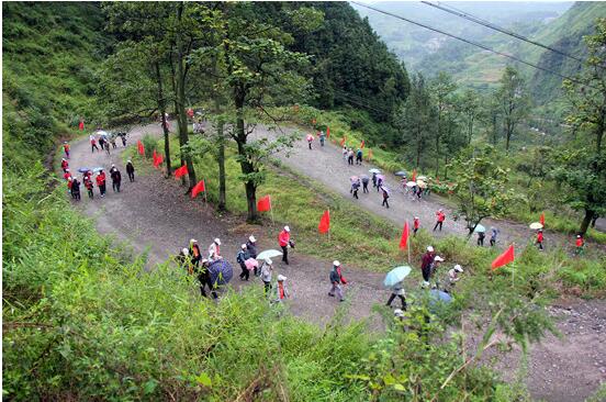 “重走抗战路——晴隆24道拐徒步活动”现场一角.