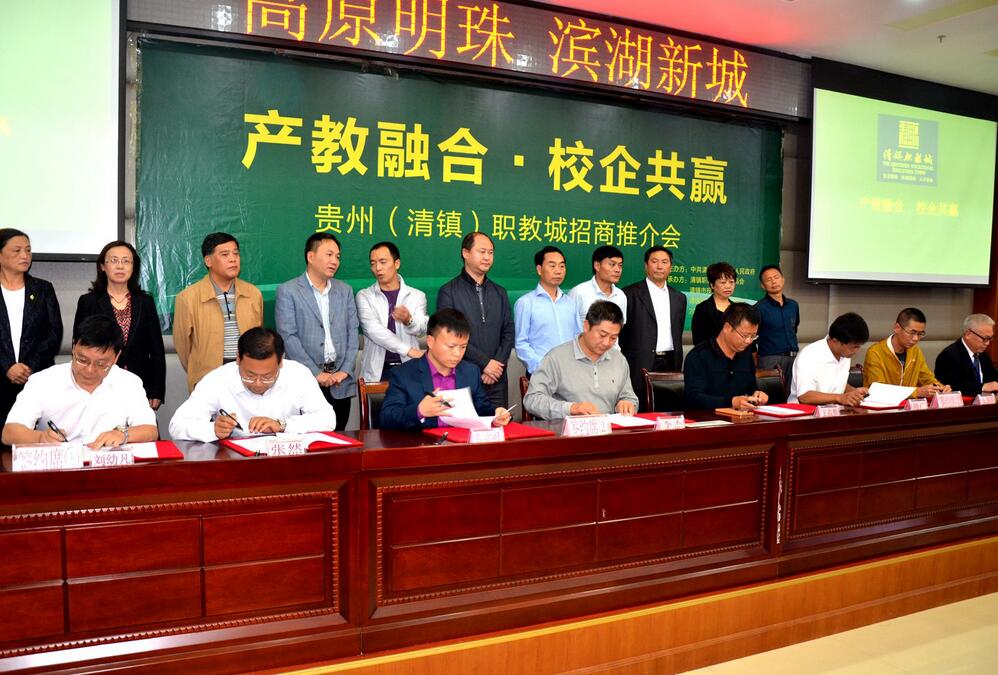 招商推介會上,清鎮市副市長周海濤說, 自2012年以來,職教城作為全省“一體兩翼多節點”的職業教育發展空間布局主體,遵照省委、省政府提出“把清鎮職教城建成全省教城互動、產教互動、職教改革、技能培訓的引領區、創新區、示范區”的目標定位,通過省、市、縣三級黨委政府以及各級各部門三年的共同努力。目前,已入駐的19所院校已初具規模,其中11所院校(東區8所、西區3所)已實現招生辦學,在校師生達6萬余人。同時依托職業院校聚集的人才優勢,10余家大數據、大健康、裝備制造等高新產業及20余家校企合作單位相繼入駐落戶職教城,產教深度融合發展取得了顯著成效。未來幾年,是清鎮市打造發展升級版、建設生態文明示范市的關鍵時期。清鎮市將搶抓“全國大開放、貴州大交通、貴陽大數據”三大機遇,全力實施“4+1”戰略(即打好生態、職教、中鋁、貴安四張牌,推進市西部大開發),加快四城建設(即生態公園城、貴州職教城、貴州新鋁城、貴安衛星城),推動清鎮的轉型升級。