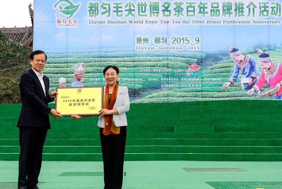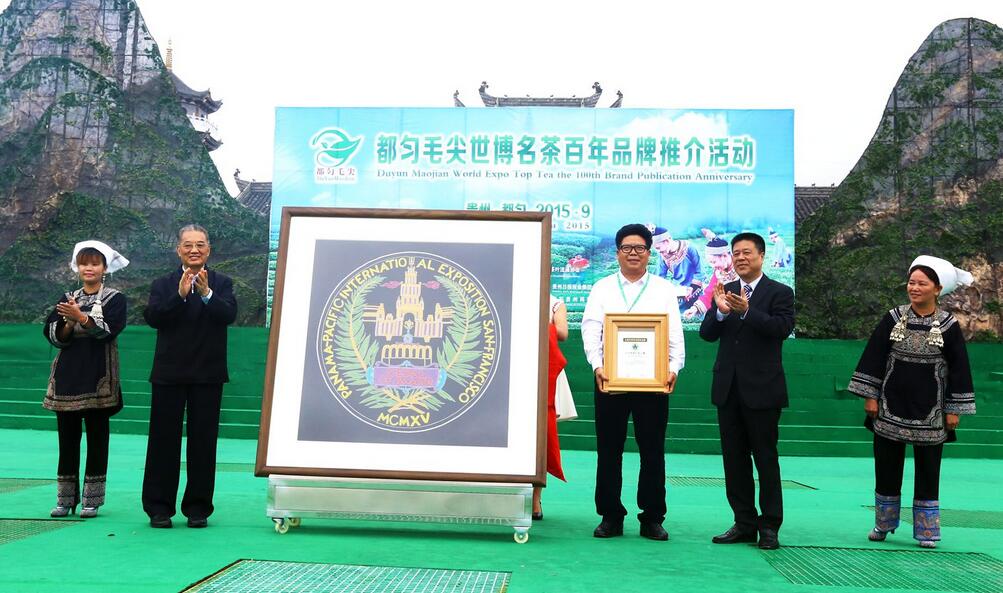 推介活動上,國家質檢總局有關負責人宣讀了《關于同意籌建國家地理標志產品保護示范區(都勻毛尖茶)的通知》。與會嘉賓為都勻毛尖品牌代言人、2014年度“貴州省茶產業第一縣”、貴州名茶銷售最佳企業和貴州名茶銷售最佳獎頒發獎牌。上海大世界基尼斯理事會總部現場頒發了“都勻毛尖獲1915年巴拿馬萬國博覽會金獎馬尾繡紀念徽章”基尼斯紀錄證書。