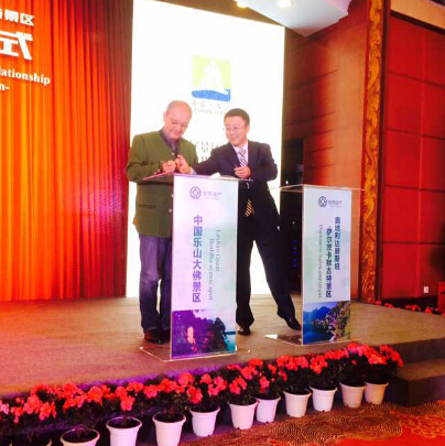 為充分利用樂山及樂山大佛景區深厚的人文底蘊和優美的自然資源,持續提升城市形象推廣和旅遊營銷宣傳,今年以來樂山大佛景區在歐中文化交流促進會、歐洲華人旅遊業聯合會的引薦和促進下,就“樂山大佛景區”與奧地利“達赫斯坦—薩爾茨卡默古特”景區締結友好景區達成共識。作為世界文化遺產的達赫斯坦—薩爾茨卡默古特景區,有海拔3000多米的山峰和清澈透底的湖泊,一年四季皆宜旅遊,是奧地利著名的旅遊品牌景區。同時,為進一步挖掘樂山大佛文旅項目嘉定坊的文化魅力和市場潛力,經過大佛景區與中國廣播電影電視社會組織聯合會音樂工作委員會多輪溝通,共同創建中國“影視音樂創作基地”,並借第二屆旅博會開幕和“2015華韻杯中國影視音樂優秀藝術獎”終評活動在樂山舉行的良好時機舉行授牌儀式,充分擴大影視音樂創作基地落戶樂山的宣傳效應和影響力。