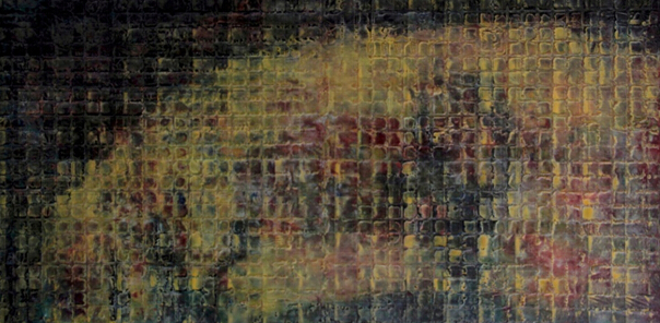 作品解讀:這是一幅可以多度欣賞的作品,這幅作品乍看猶如浩瀚的天空,繁星密布,環繞在兩個大小不同的星球之間,正是開天辟地的寫照,細端詳,浩瀚的星空形成了優美的女人體,側看是強壯的男人,猶如亞當和夏娃,將男人和女人巧妙的融為一體,嬰兒的胚胎也同時在畫中映入了人們的眼簾,寓意著新的生命誕生,同時也寓意著聖母瑪麗亞懷抱著耶穌的畫面,加上局部的芸芸眾生,使作品產生聖經的開篇史般的震撼效果。