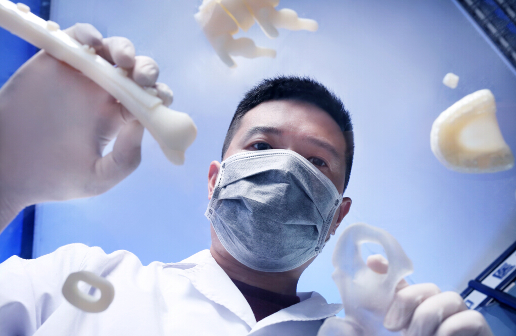 在蓝光英诺3D生物打印实验室可以看到,它使用含人体干细胞和生长因子等的“生物墨汁”,结合其他材料层层打印出产品,经打印后培育处理,形成有生理功能的组织结构。未来,它的最终目标是实现以血管再生为核心,构建具有完整生物学功能的组织器官,实现病变、衰老组织器官的精确修复和替代。这项技术成功后,有望解决全球面临的移植组织或器官不足的难题。