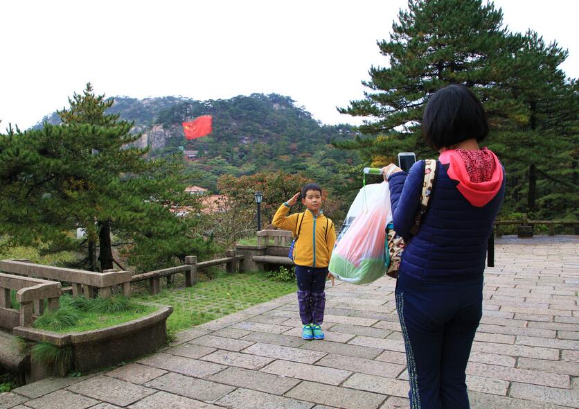 北京遊客廖清帶著孩子在國慶節來到黃山,希望孩子感受大自然,能通過登山鍛煉增強毅力,看到國旗,她表示很驚喜,“因為孩子學習過課文《黃山奇石》和《爬天都峰》,一直想來黃山,今天看到了非常漂亮的風景,孩子很興奮。意外的地方是看到了這面大國旗,我覺得像這樣把自然景觀和愛國主義結合起來,就會更有教育意義。”