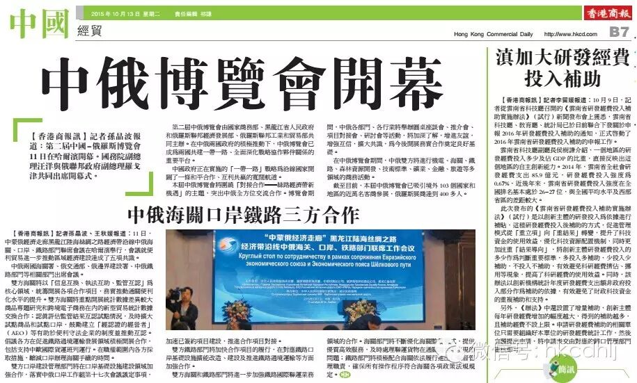 【香港商报讯】记者孙晶波、王秋媛:11日,以“互助合作、便利发展”为主题的“中蒙俄经济走廊”黑龙江陆海丝绸之路经济带沿线中俄海关、口岸、铁路部门联席会议在哈尔滨举行,会议就便利贸易进一步推动区域经济建设达成了五项共识。