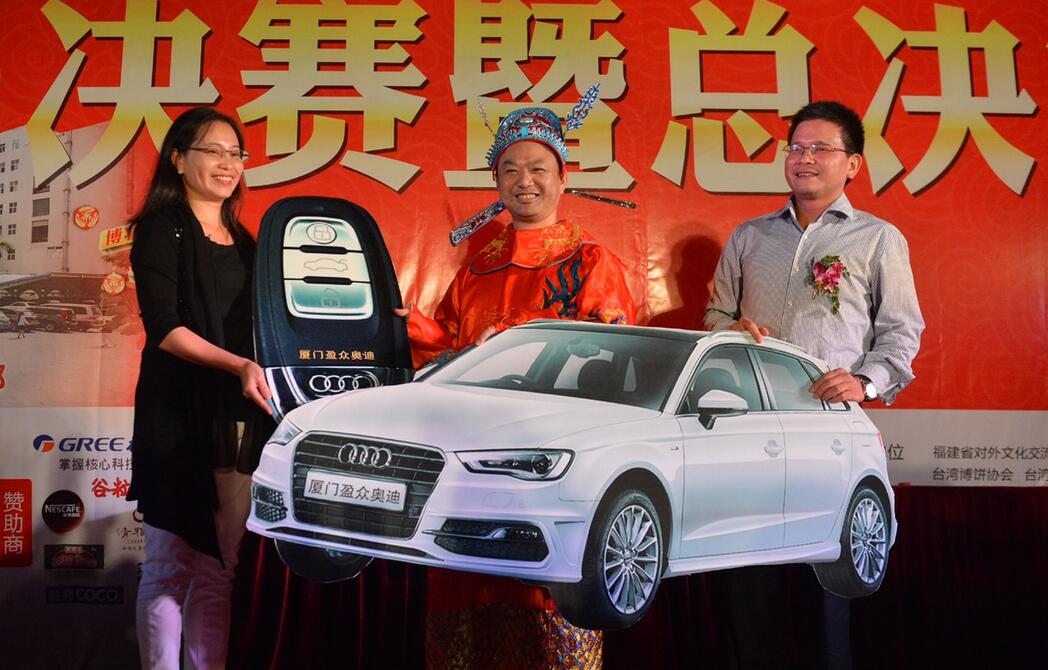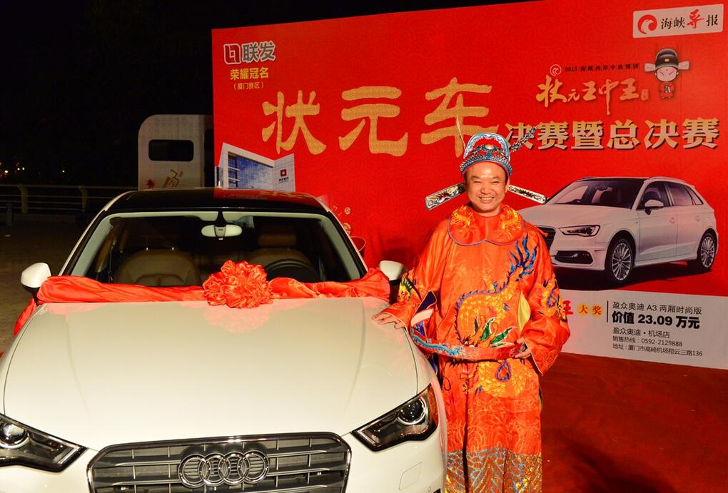 來自臺灣本島、金門、廈門、龍巖、漳州的296名博餅復賽狀元,分成19桌,開始爭奪王中王的決賽權。經過一輪激烈的廝殺,19位新科狀元王誕生,他們身披綬帶來到決賽區,進行最后一輪狀元王中王的運氣大比拼。今年44歲的海峽導報忠實訂戶楊藝翔,一舉拿下狀元王中王,成為最后的贏家。