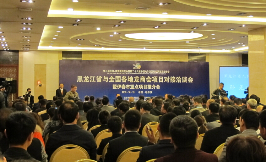 【香港商报讯】记者孙晶波、王秋媛:13日, 2015第二届中俄博览会期间,黑龙江省商务厅与伊春市人民政府共同举办了“黑龙江省与全国各地龙商会项目对接洽谈会暨伊春市重点项目推介会”。伊春市委副书记、市长李坤率市政府代表团在哈尔滨华旗饭店国际会议中心举行了专场推介活动。