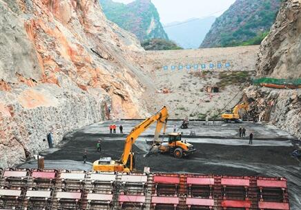 10月18日,成縣磨壩峽水源(水庫)建設工程正在緊張施工。據悉,該工程概算總投資28572萬元,水庫總容積1790萬立方米,預計2016年建成投用后,可滿足20萬城市人口供水需求。本報通訊員 張平良