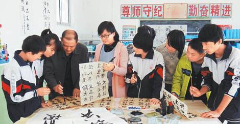 距離水阜村文化站不遠,就是水阜初級中學。在眾多書畫家“鄉賢”的熏陶下,該校一些學生還報名參加了興趣書法小組。