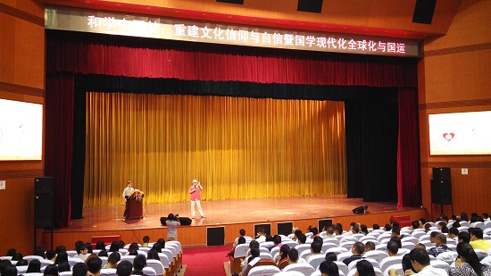 【香港商報訊】記者 劉洗涌報道:10月24日,“和學中國夢——重建文化信仰與自信暨國學現代化全球化與國運”大型國學公益講座在中共湖南省委黨校隆重舉行。本次活動由中華和學書院(和盟會)、長沙和文化研究會、北京和諧大公文化、前海智庫、南岳天下文化交流中心、衡陽船山教育服務中心、長沙養正文化、長沙天則文化、長沙善卷書院、紅星木雕城聯合主辦,中華和學創始人、世界知名思想家劉浩鋒主講,特邀北京知名學術人士李晨、湖南大學原校長謝炳炎、湖南省軍區原副政委黃祖示將軍、湖南外貿職業學院院長唐瑾等領導、專家、學者蒞臨,工信部副部長陳肇雄、中央黨校研究室副主任崔振椿發來賀信,一千多位國學愛好者參加。